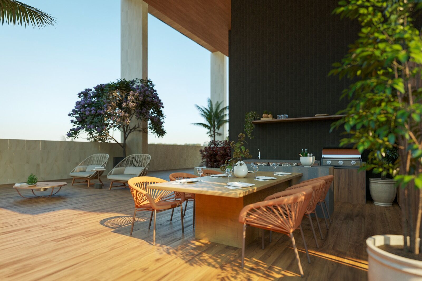 Além disso, incorpora um conceito dinâmico, com lojas na parte térrea, criando um ambiente urbano ativo, com mais praticidade, conveniência e valorização no entorno.